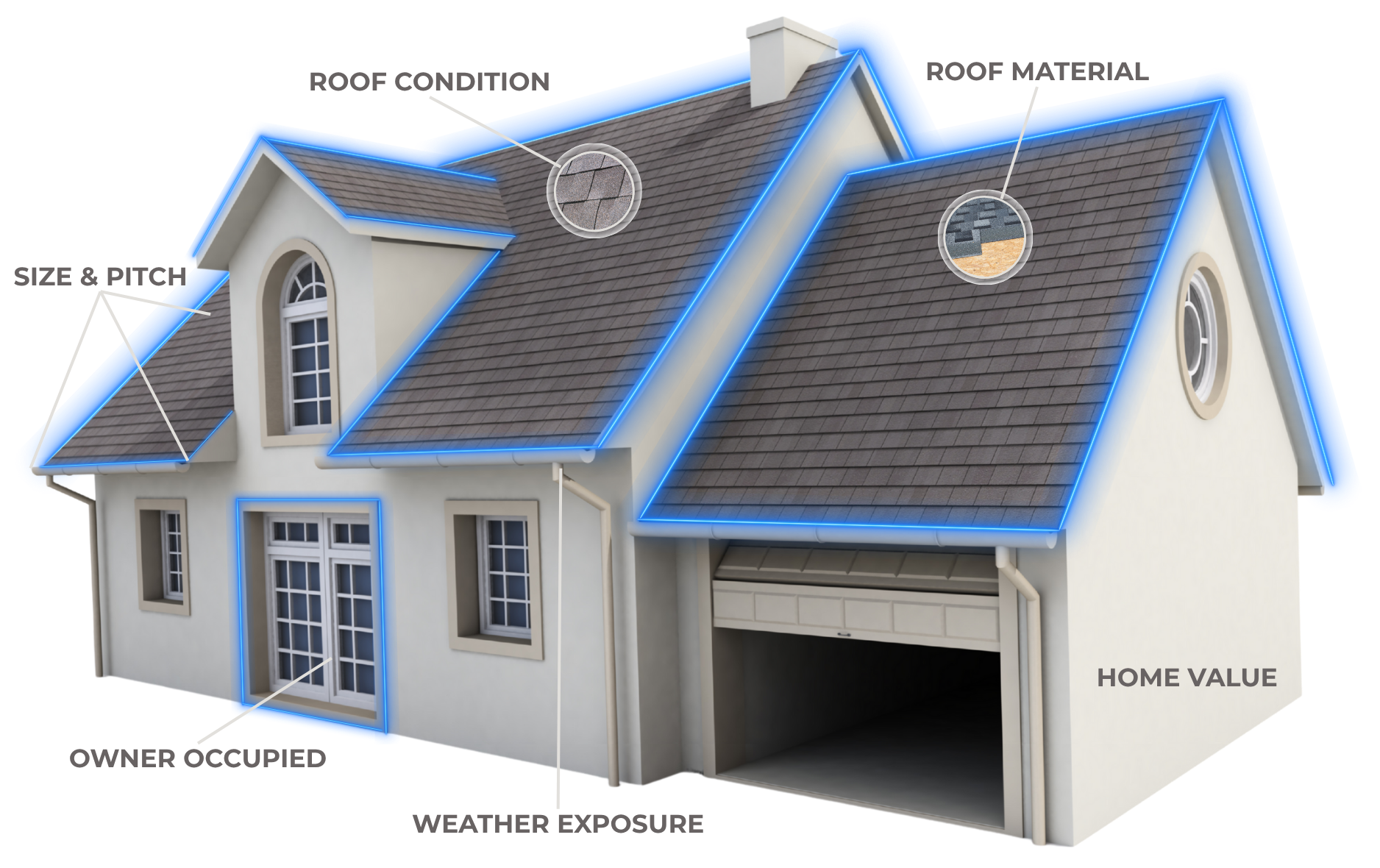 Powerful AI models analyze images of each and every roof to give you detailed property insights.